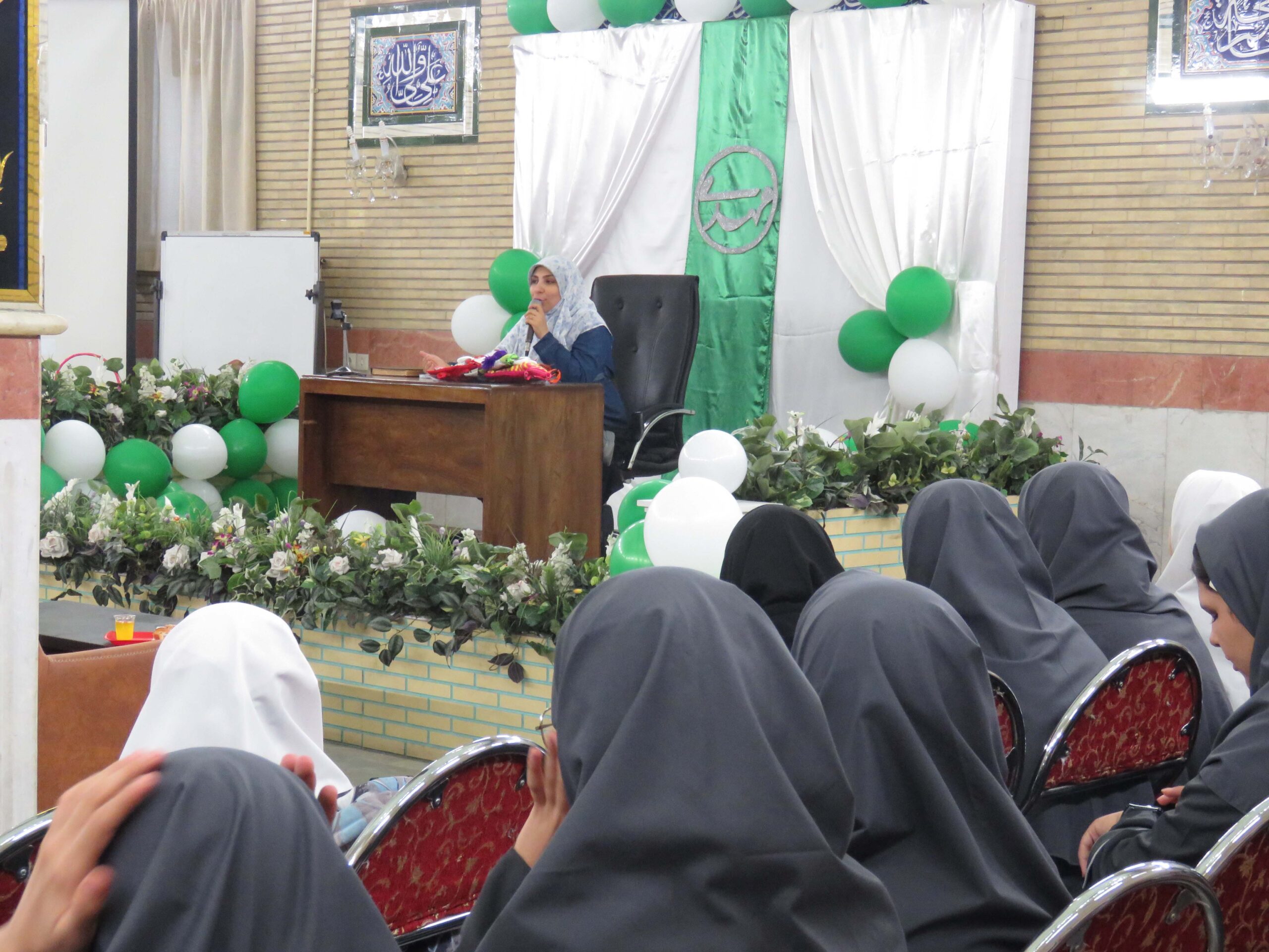 خانم دکتر صالحی ضمن ارائه توضیحات در خصوص ایام انتظار و شرایط فرد منتظر(سرباز) به اجرای مسابقه آشنایی با ولیعصر(عج) پرداختند و جوایز به دانش آموزان شرکت کننده تقدیم گردید.